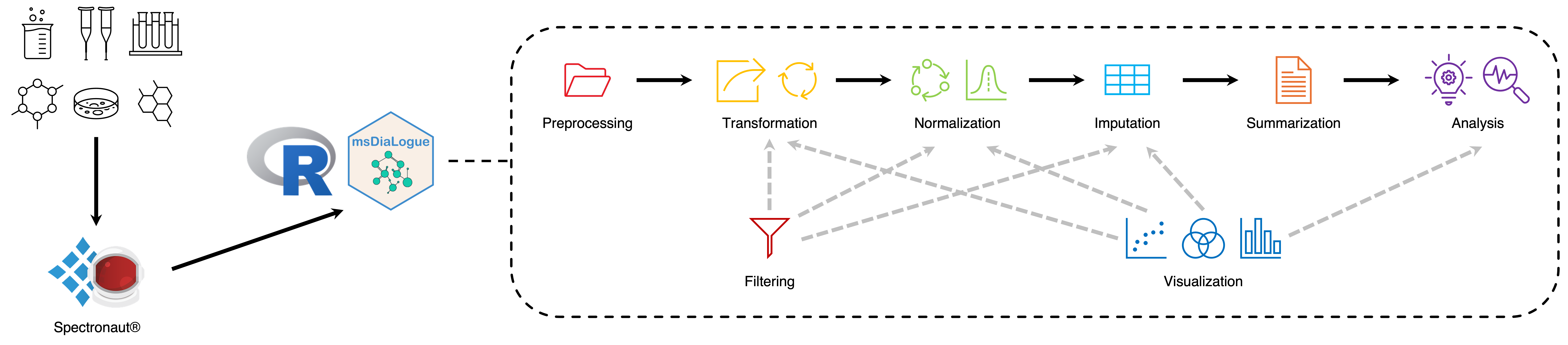 msDiaLogue is a customized, modular, and flexible workflow developed jointly by UConn’s PMF and SCS for data-independent acquisition (DIA) mass spectrometry (MS)-based proteomics data.